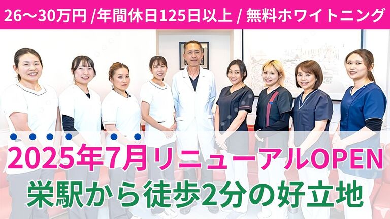 【2025年7月リニューアルオープン!】栄駅から徒歩2分/年間休日125日以上/無料ホワイトニング