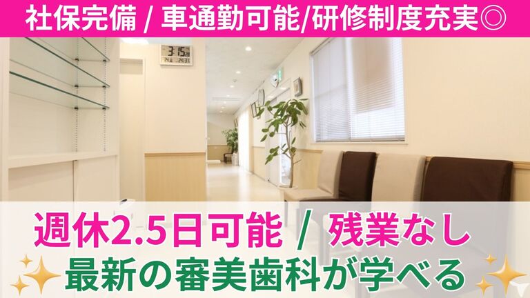 【週休2.5日】車通勤可/社保完備/ホワイトニング受け放題/リップエステも出来ます♪