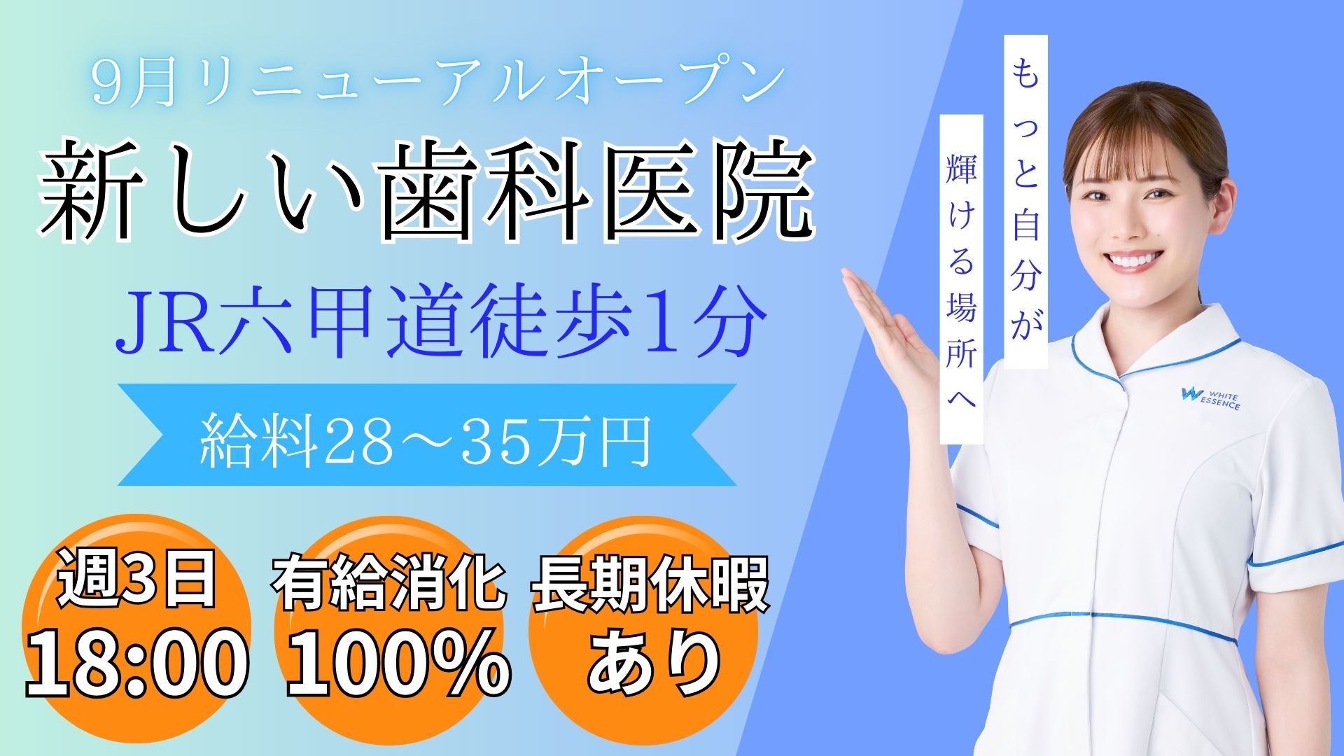 【姫路市】週休2.5日|年間休日120日以上|社保完備|歯科衛生士が主役のあなたが輝ける場所を提供します!