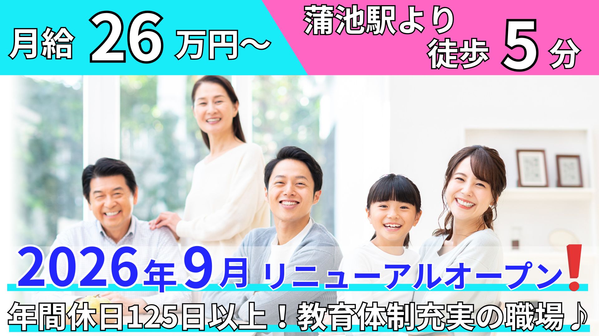 【2026年9月リニューアルオープン】蒲池駅より徒歩5分×月給26万円~/有給取得率100%/年間休日125日以上/車通勤OK