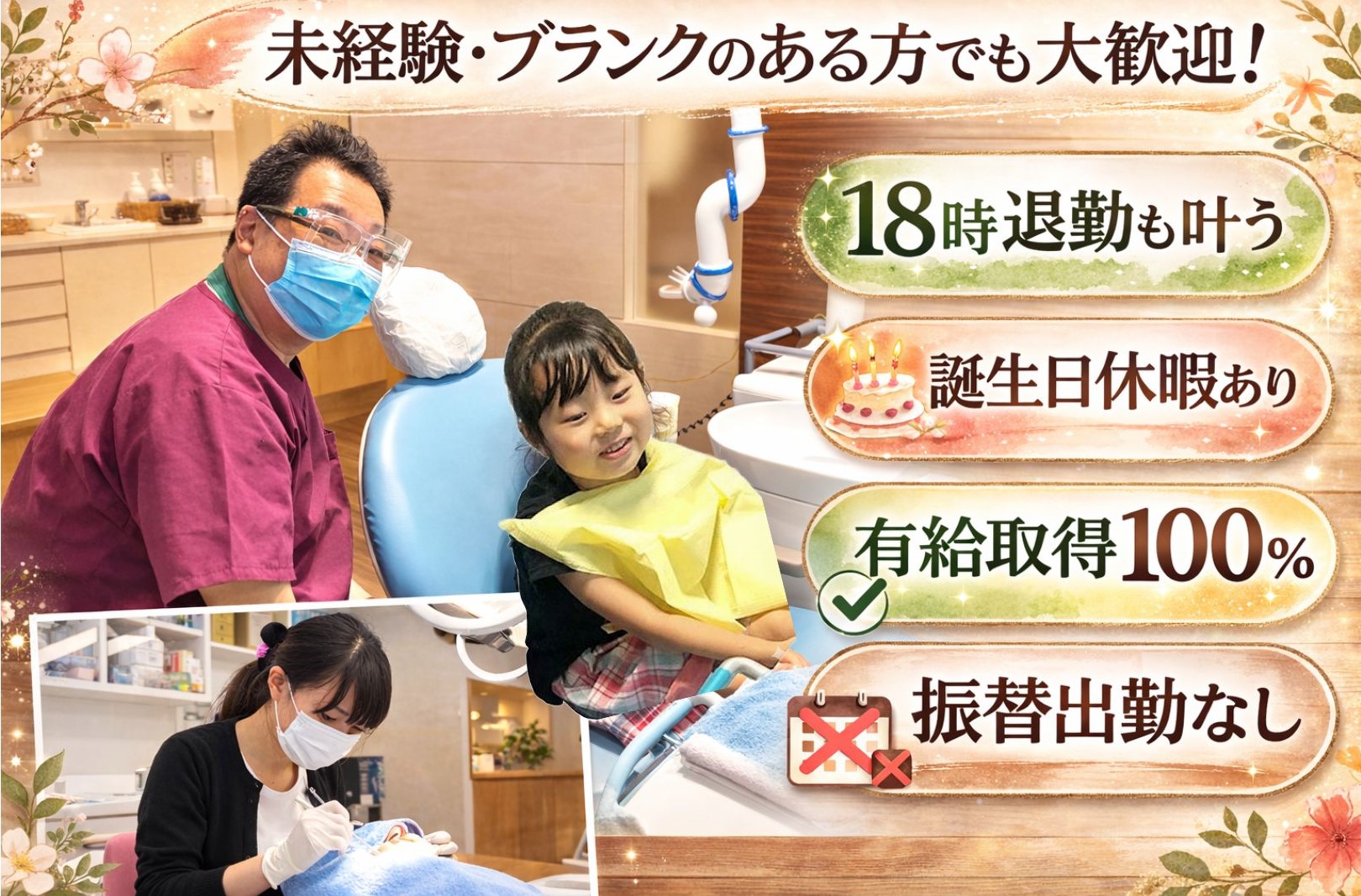 【2026年4月15日 リニューアルOPEN!】18時退勤も可能◎/年休120日以上×残業ほぼなし/研修制度充実/ホワイトニング受け放題♪